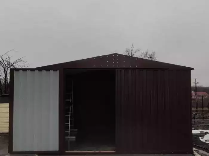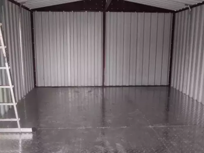 По итогу, выбор пал на 4-х метровый контейнер с плоской крышей и рольставнями в оттенке RAL7024 (под цвет своего забора). Как показали фотографии – хозблок вписался идеально!