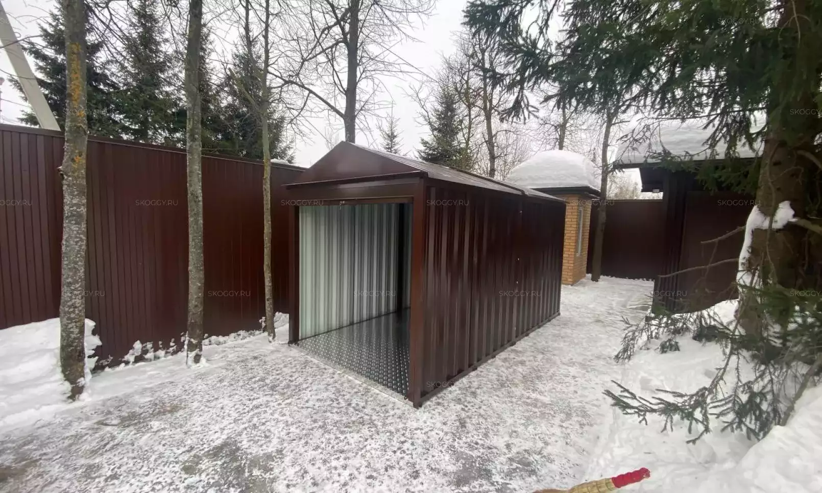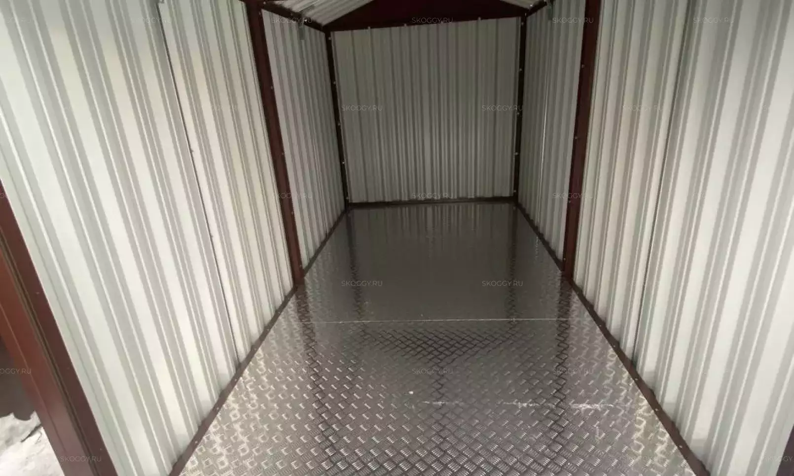 После презентации продукции Максим решил не затягивать и сразу выбрал подходящий для него вариант - стандартный блок-контейнер длиной 4 метра в стандартном цвете цинк с двускатной крышей. Отличный вариант для организации хранения - много места внутри, крыша надежно защищает от любой непогоды.