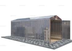 Хотя наша продукция по своему назначению не соответствует классическому определению ангара, но очень часто потребители именно так называют любые объекты, сделанные из профилированного металла. Дело в том, что гаражи, хозблоки и блок-контейнеры могут располагаться как поодиночке, так и формировать единый комплекс. В последнем случае сооружение выглядит объёмным, напоминая по своему внешнему виду типичный каркасный ангар. Во многих примерах такое здание подойдёт для универсальных целей хранения имущества. Оно вместительное, может устанавливаться на любой подходящей ровной и твёрдой площадке, недорого стоит, легко обслуживается и даёт возможность длительной эксплуатации.