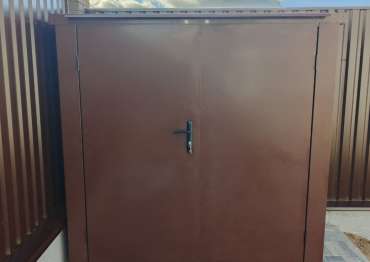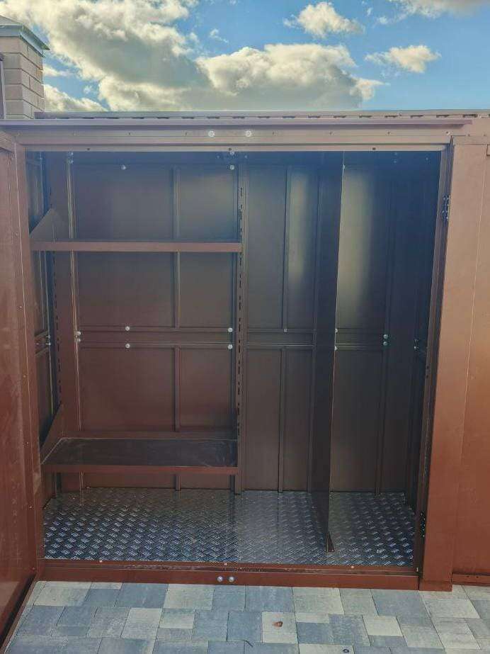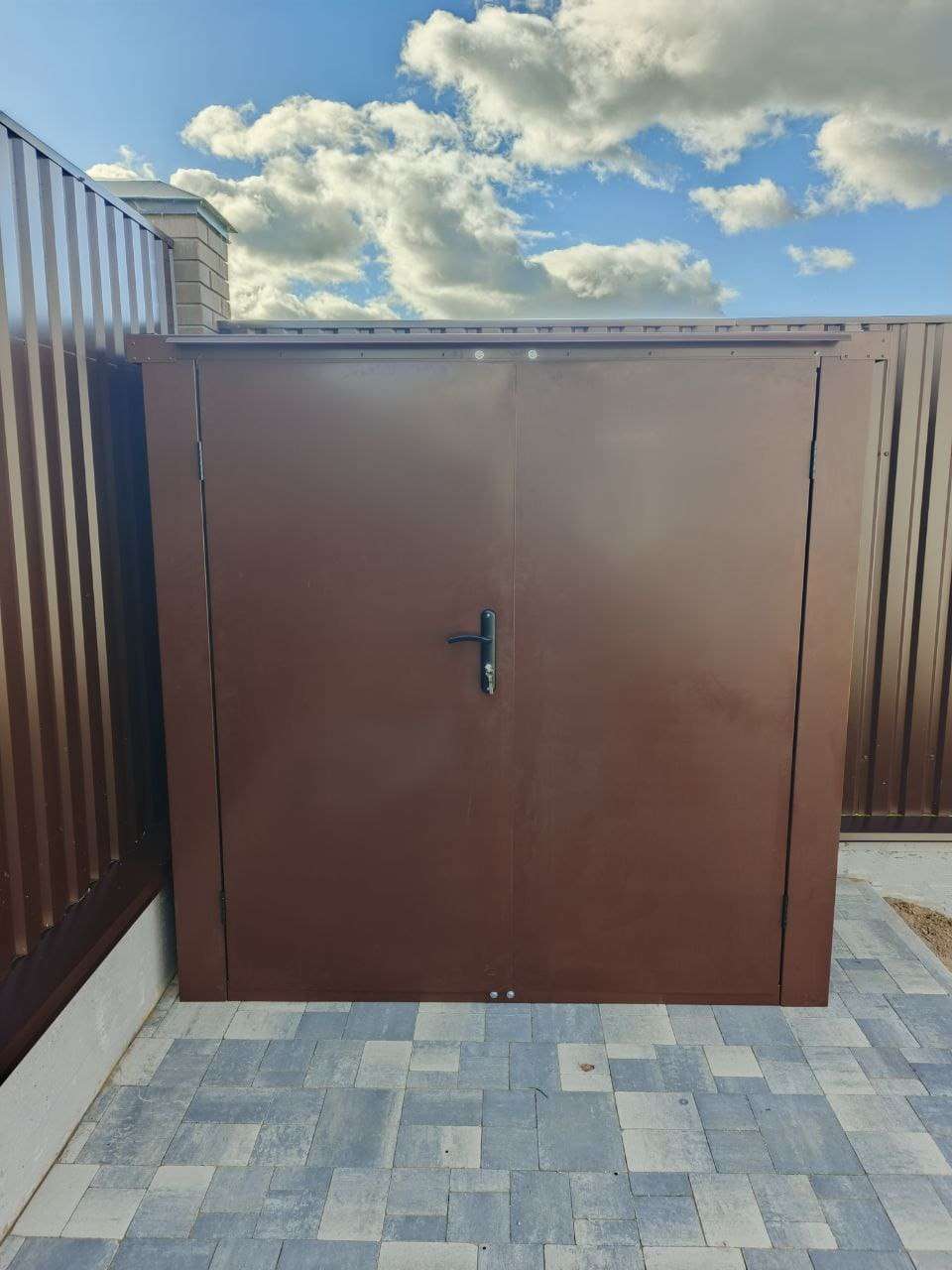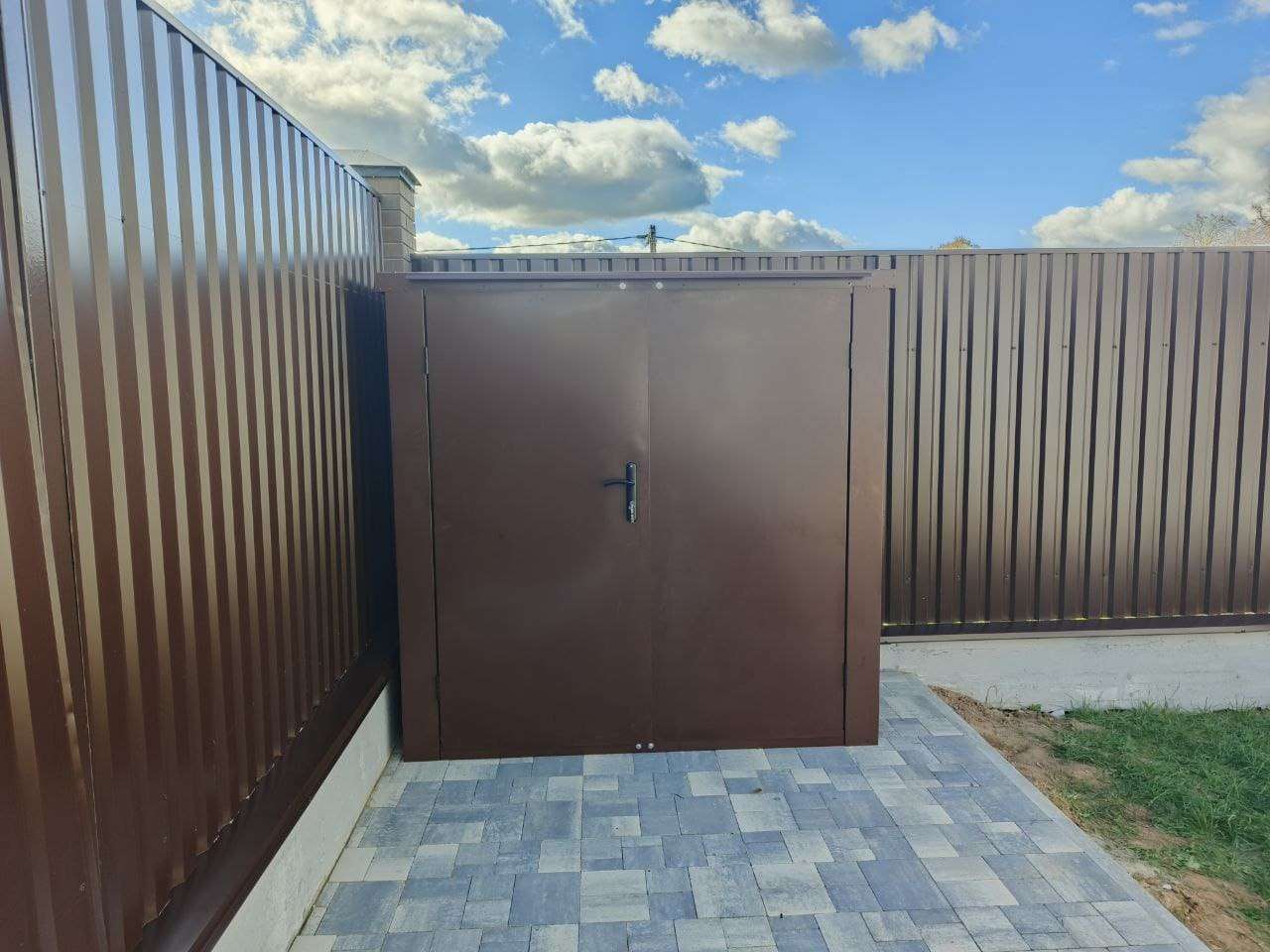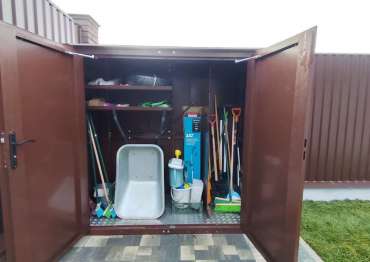 Проект: уличный шкаф 2,03 х 2,022 х 0,88 м для хранения садового инвентаря в шоколадно-коричневом цвете.