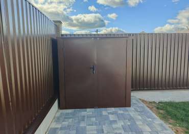 Нами была изготовлена конструкция размером 2,03 х 2,022 х 0,88 м в популярном и стильном шоколадно-коричневом цвете RAL 8017. Именно такая расцветка была выбрана для того, чтобы постройка гармонировала по цвету с забором на участке.